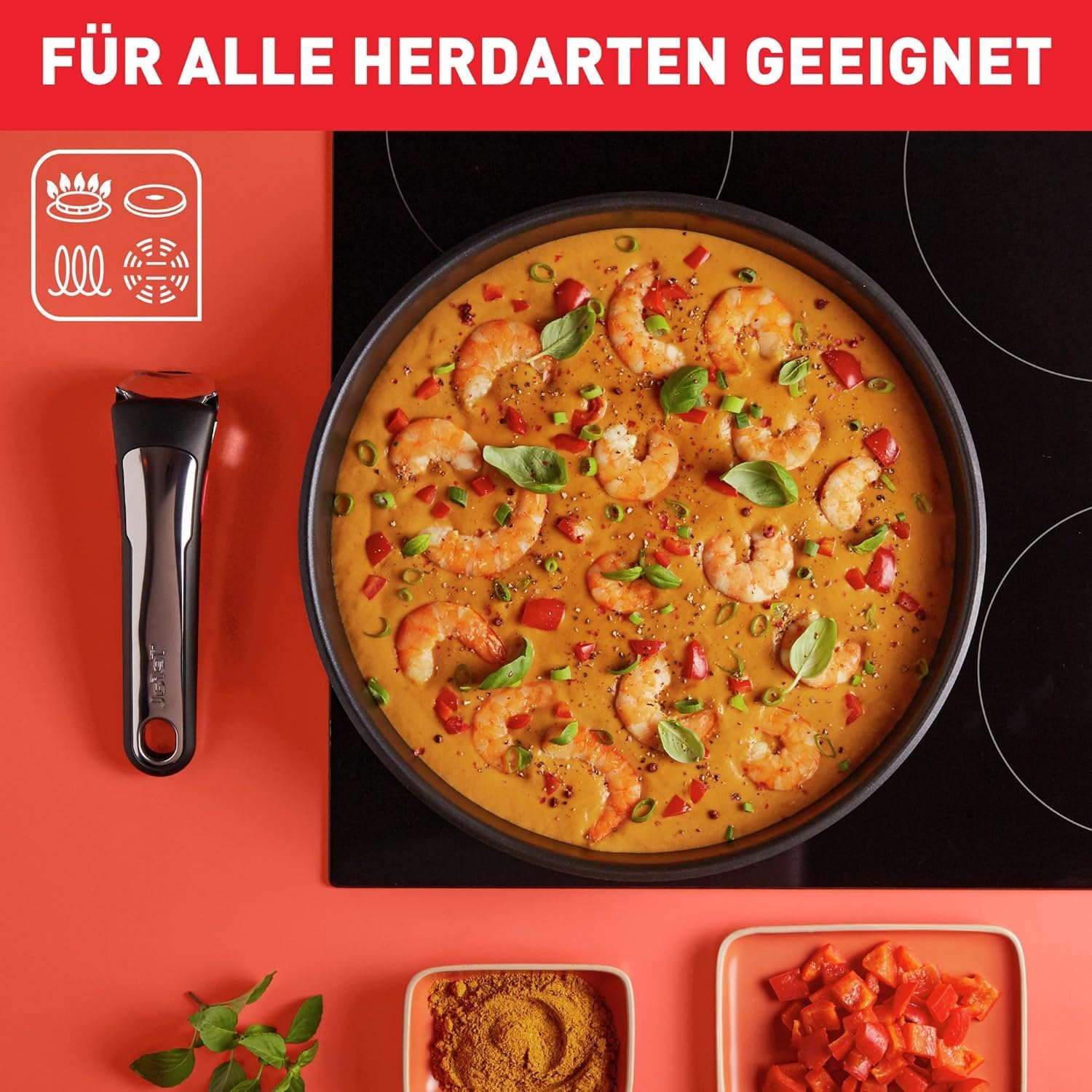 Save space and simplify your cooking with Tefal Ingenio Preference ON: our premium stainless-steel non-stick cookware with our iconic removable handle. Ingenio is a total game-changer in the kitchen. For starters, it’s simple to store. Minus the handle, these pans stack inside each other, for up to 50 Percent more cupboard space. The handle is 100 Percent safe, with a three-point system to keep it secure. It’s reinforced to carry up to 10kg and guaranteed for 10 years. Plus, it’s a magician in the kitchen, turning frying pans into oven dishes, and saucepans into bakeware. Go straight from the hob and into the oven. Unclip the handle and voila: the pan is a baking tin. These mirror-polished pans also make stylish serving dishes; just use the handle to go from oven to table. Leftovers? Pop on the lid and your pan is fridge-ready. Built for uncompromising durability, Ingenio Preference ON pairs rustproof stainless steel covered by a 10-year guarantee with our 6 x stronger Titanium anti-scratch non-stick coating. 100 Percent toxin-free, this ultra-hard coating is easy to clean – by hand or in the dishwasher. Thermo-Signal technology guarantees delicious meals, every time. When the hourglass disappears, the pan is at the ideal temperature for perfect searing. And our Thermo-Fusion base ensures fast and even cooking on all hobs, including induction. Build your Ingenio collection with Tefal’s range of stackable pan accessories – from straining lids to spare handles. What’s in the box? 24cm frying pan 28cm frying pan 16cm saucepan 20cm saucepan 26cm wok 24cm sauté pan 16cm hermetic plastic lid 20cm hermetic plastic lid 16cm glass lid 20cm glass lid 24cm glass lid 2 stainless-steel Ingenio removable handles According to internal tests, vs. Tefal fixed handle ranges Removable handle safe for up to 10kg, according to internal tests This Tefal guarantee does not affect the statutory rights a consumer may have or those rights that cannot be excluded or limited, nor rights against the retailer from which the consumer purchased the product Do not store acidic food Guarantee relates to the stainless-steel material, provided the product is used in accordance with the manufacturer’s recommended product instructions; this Tefal guarantee does not affect the statutory rights a consumer may have or those rights that cannot be excluded or limited, nor rights against the retailer from which the consumer purchased the product Longer non-stick performance compared to Tefal’s standard non-stick coating Stricter controls than those required by current food contact regulations; no PFOA in compliance with applicable regulations; no lead (Pb), no cadmium (Cd) means no intentional addition of Pb and Cd in the coatings and not detected by tests conducted by external laboratories Dishwasher safe minus removable handle.